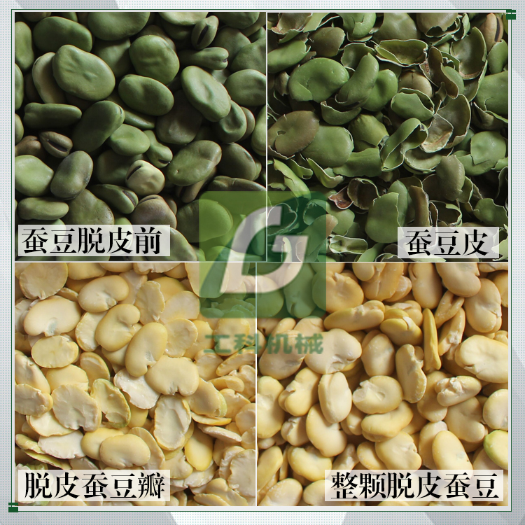 特點一:該蠶豆脫皮機可將蠶豆的籽粒去掉表皮,而不損傷其籽粒具有的本身特性,去皮后的蠶豆表面光滑潔凈無破碎, 并能進行米糠分離、豆米分選等。