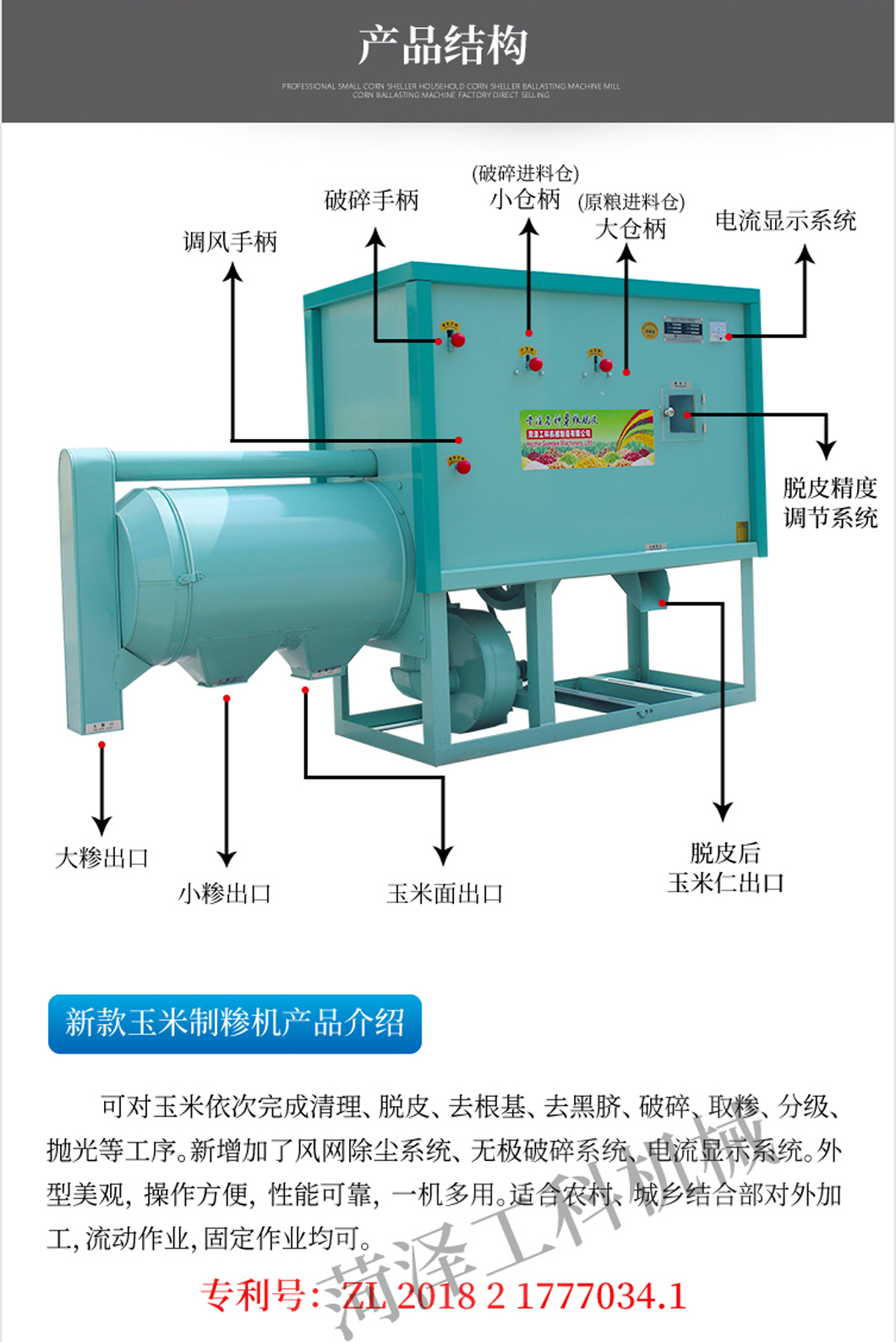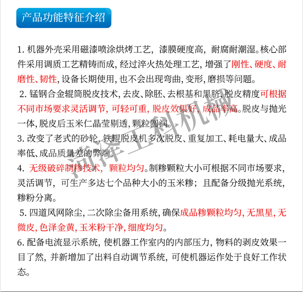 該型號(hào)產(chǎn)品為本公司拳頭產(chǎn)品,行銷各地??蓪?duì)玉米一次性完成清理、脫皮、除胚、去根基、去黑臍、破碎、取糝、分級(jí)、拋光、清選。新增加了風(fēng)網(wǎng)除塵系統(tǒng)、無(wú)級(jí)破碎系統(tǒng)、電流顯示系統(tǒng)。